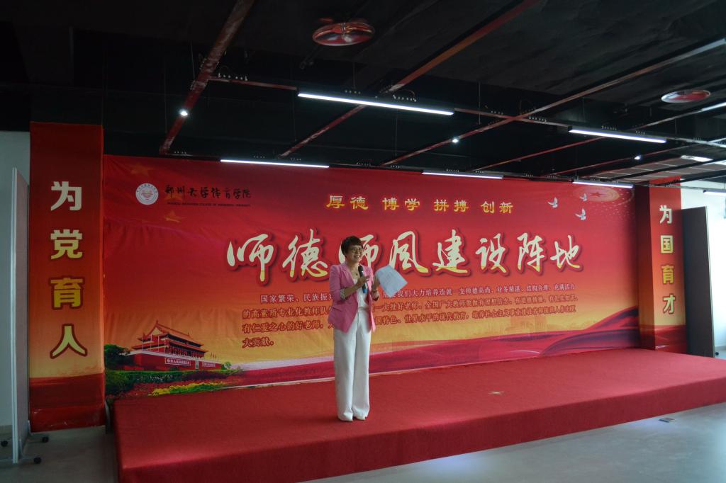 董鲜玲书记表示,师德师风建设阵地的启用是加强教师队伍管理,提升教师思想的有效途径,对进一步推进师范专业发展有着十分重要的意义。全体教师要牢记“赓续百年初心 担当育人使命”,在以后的工作中将四有好老师的必备素养内化为己有,终身铭记并时时警醒自己,谱写郑大体院教育新篇章。