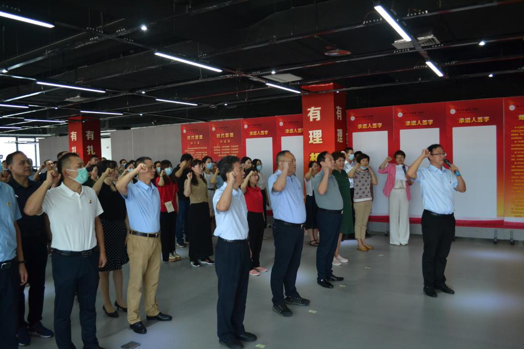 张庆来主任带领与会教师进行庄严宣誓,激扬的誓言传承着体院人不忘教育初心,牢记教育使命的坚定信念,宣誓后全体教师在《师德承诺书》上庄重签字 。