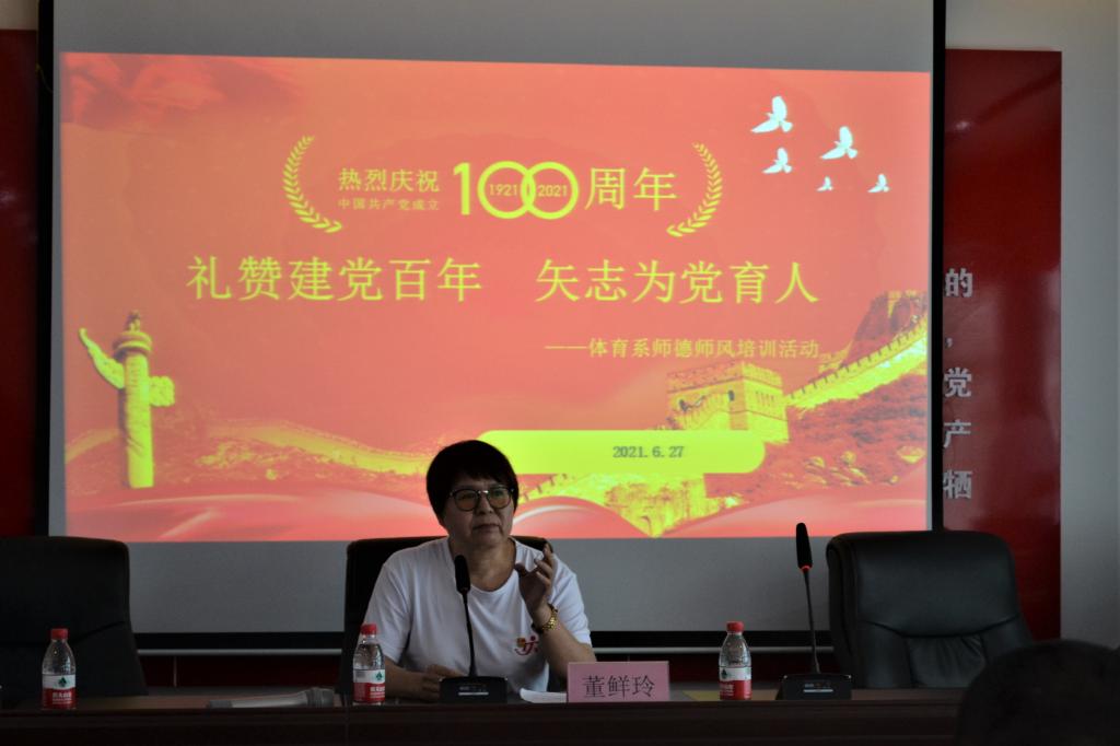 为庆祝中国共产党成立100周年,切实担负起“为党育人为国育才”的重任。6月27日上午,体育系组织开展“礼赞建党百年,矢志为党育人”师德师风建设专题活动。活动由系党总支书记董鲜玲主持。