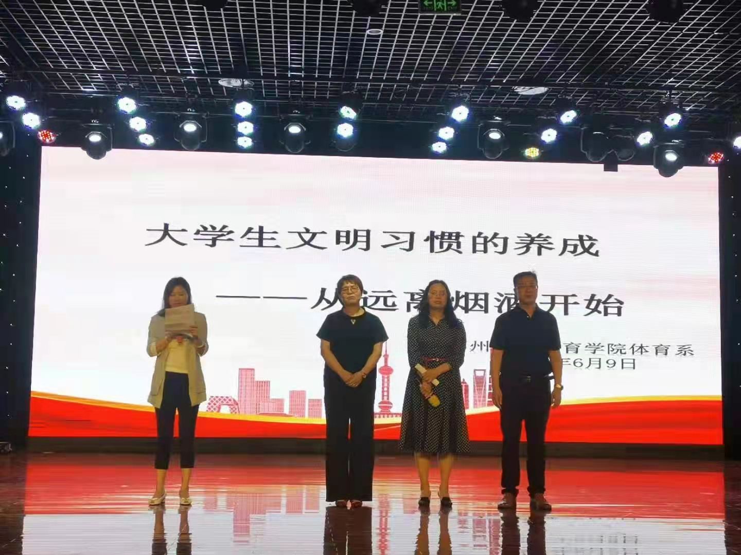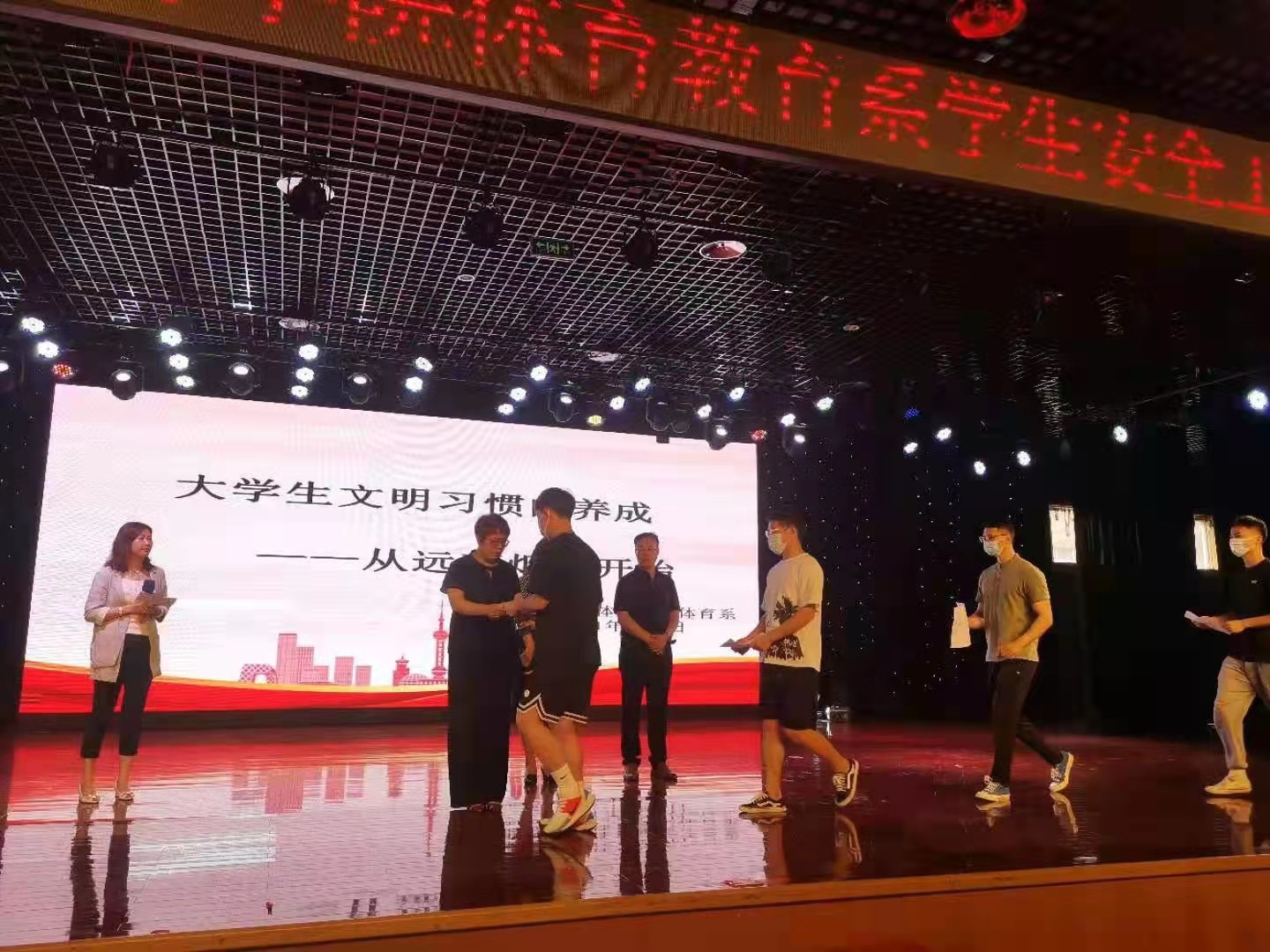 为进一步牢固树立安全第一的思想,促进学生安全意识和素养的再提升,体育系于2021年6月9日中午12:30在大学生活动中心开展以“大学生文明习惯的养成——从远离烟酒开始”为主题的学生安全工作。学生处处长祖慧峰、体育系党总支书记董鲜玲、体育系主任张庆来、学生处副处长广晖、学生处全体老师、
