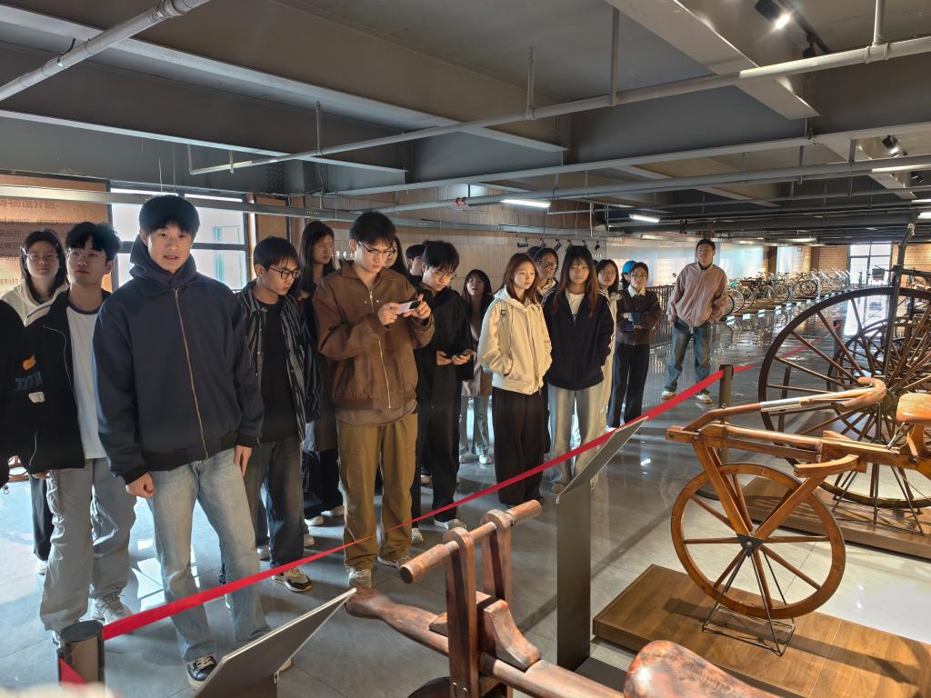 活动首站来到河南自行车博物馆。馆内丰富的藏品让学子们眼前一亮,从百年前的复古自行车到现代科技感十足的运动自行车,从自行车零件演变史到其背后承载的时代记忆,每一件展品都成为鲜活的“教材”。在讲解员的带领下,学子们认真聆听自行车与社会发展、民生变迁的紧密联系,不时驻足观察、交流讨论,不仅了解了交通工具的进化历程,更深刻体会到科技创新对生活的深远影响,激发了探索未知、勇于创新的热情。