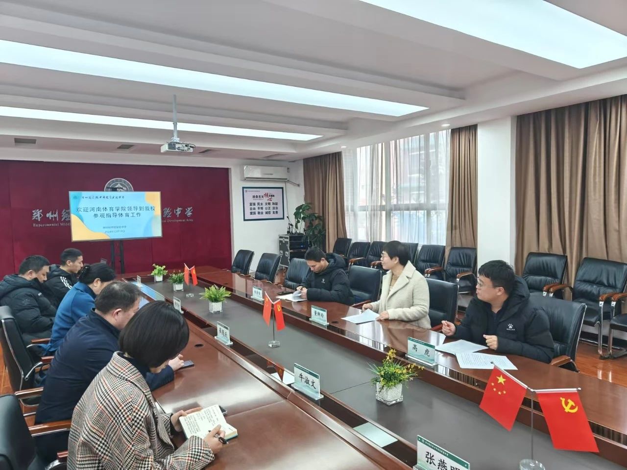 为深入贯彻落实党中央、教育部关于开展“访企拓岗促就业”专项行动的工作部署和要求,进一步加强与中学的交流合作,积极拓宽体育教育专业学生就业渠道,12月19日,体育教育系党总支书记董鲜玲一行先后走进经开区八十五中学、经开区实验中学、经开区外国语中学开展“访企拓岗促就业”专项行动,并与经开区教文体局教研教科室主任黄素玲、经开区教文体局教育发展科科长崔随庆、三所中学学校领导、体育组部分教师代表开展交流座谈。