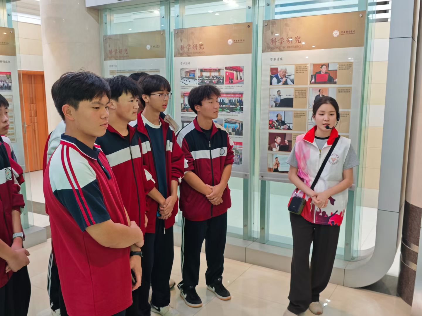 参访期间,伊川县新时代高级中学校长何国君带领参访团首先走进河南体育学院校史馆。通过讲解员的细致介绍,参访团系统了解了学校的办学历史、发展历程、学科建设成果及体育文化传承,对学校在体育教育领域的深厚底蕴和突出贡献有了全面认识,不时驻足观看珍贵史料与荣誉展品。