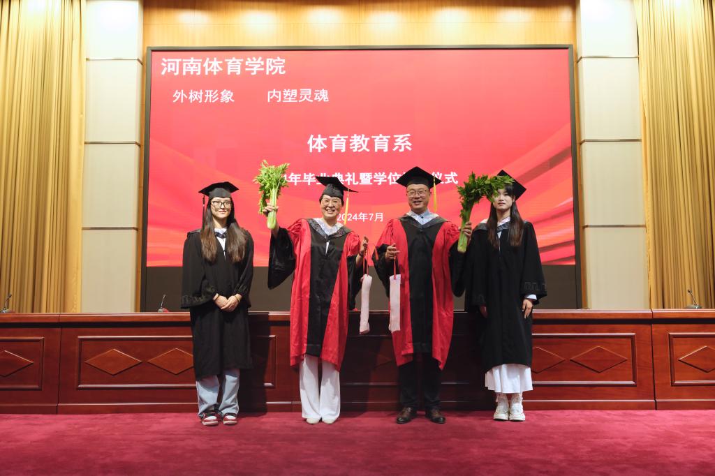 7月2日下午,体育教育系2024届毕业典礼暨学位授予仪式在学术报告厅隆重举行。学院教务处处长阎彬、科研处处长李凤梅及系教授委员会成员出席典礼。体育教育系全体教师以及2024届全体毕业生“齐聚一堂”,共同见证这一光荣、庄重的时刻。