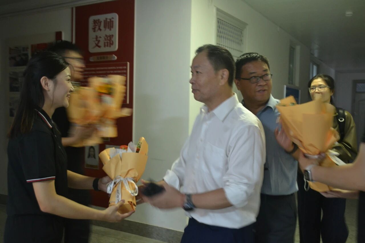 座谈会上,学生代表手捧鲜花走向老师,为每一位教师献上鲜花并表达诚挚的感谢:"老师,您辛苦了!"一束束鲜花承载着学子对师恩的感激,温暖了每一位教师的心田。