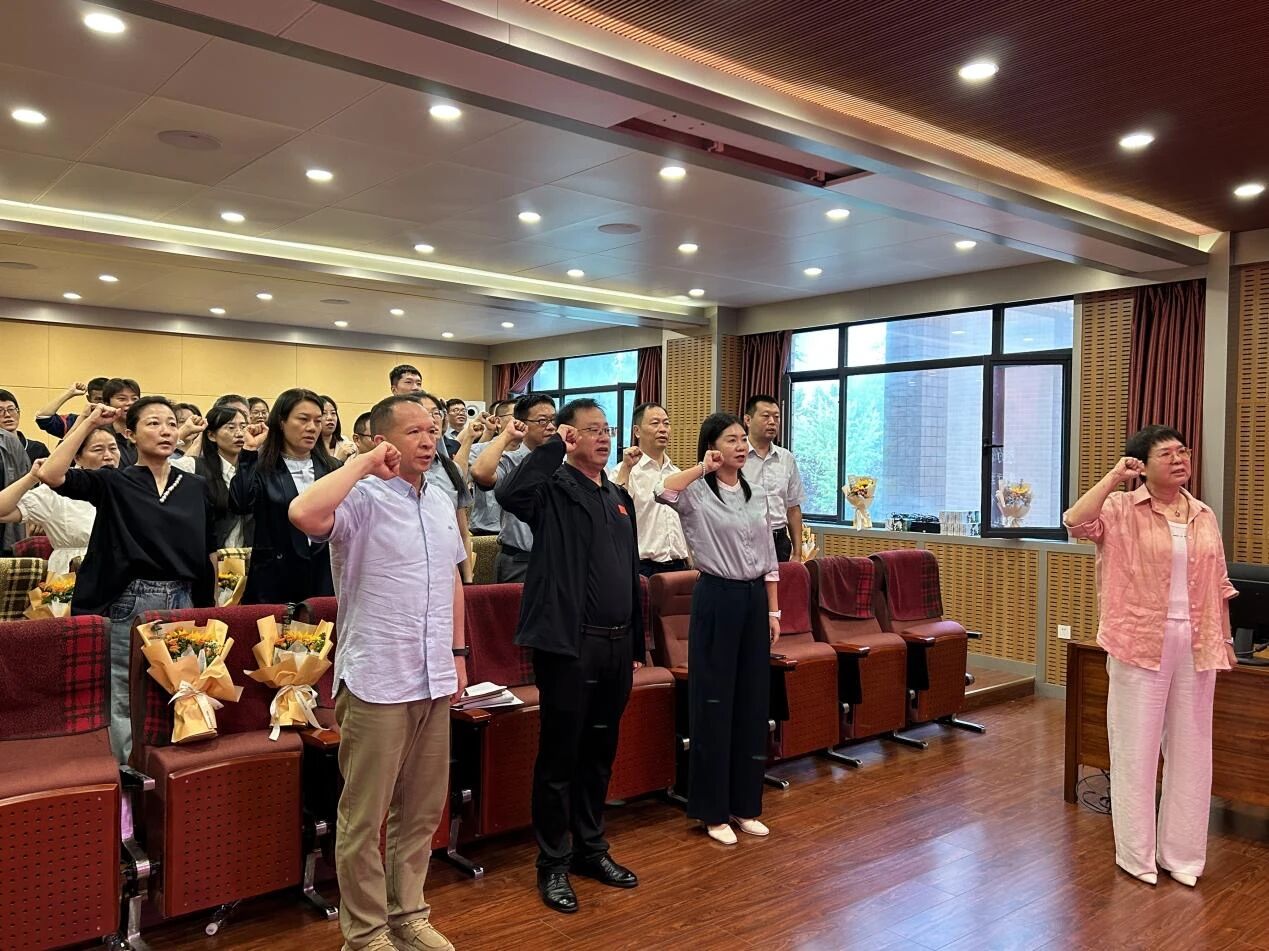 系党总支书记董鲜玲带领全体教师庄严重温了《人民教师誓词》,铿锵有力的誓言回荡在会场,展现了教师们投身教育事业的坚定信念与崇高理想。