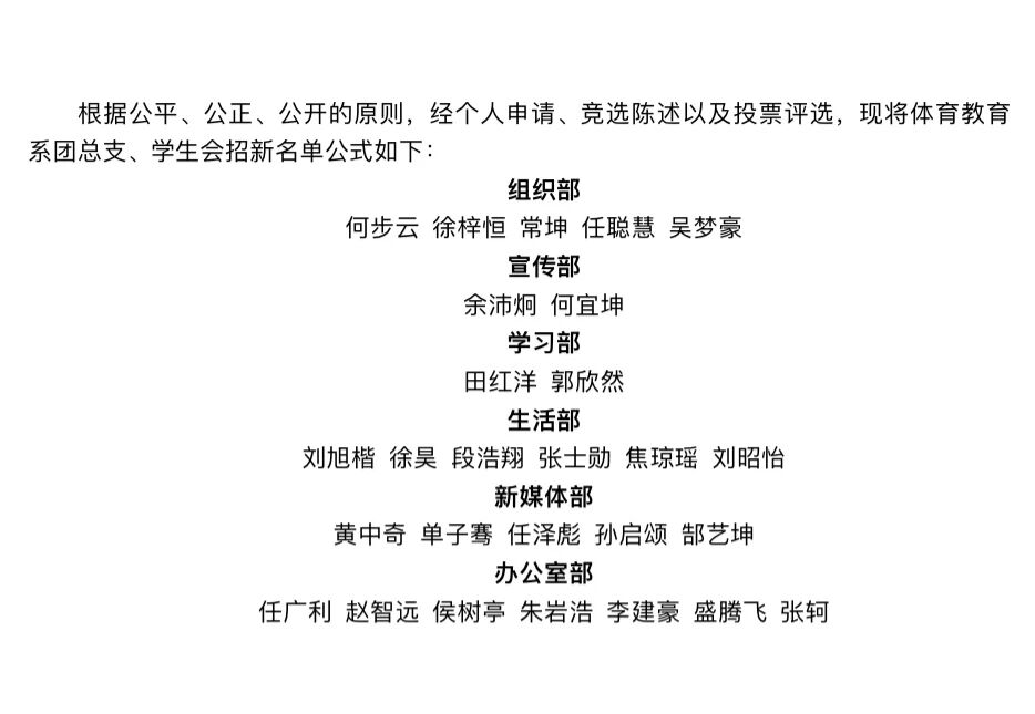 此次招新大会的成功举办,不仅为系部学生组织注入了新鲜血液,更让2024级学生找到了融入集体、实现自我价值的新方向。以下是入选同学名单!