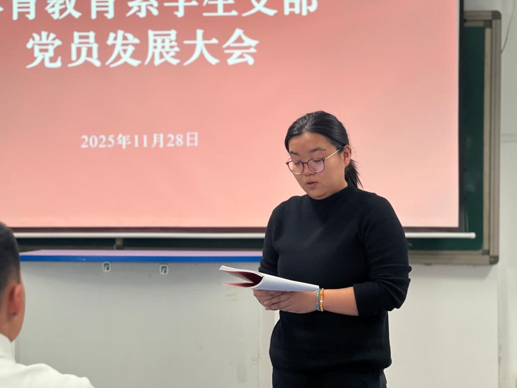 最后,二支部书记王洪懿对新党员提出期望,鼓励大家立足专业特色,将党性修养与体育教育使命结合,为体育教育事业的发展贡献一份力量。