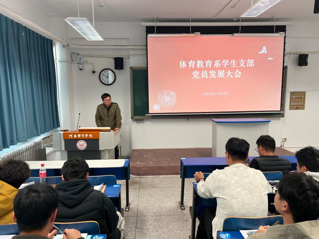 11月28日,体育教育系学生支部在教学楼505教室召开党员发展大会,专题讨论接收王源、张荃凯、张浩、闫紫彤、张雍、赵耀、赵沛霖、李鹏旺、杨金涵、崔亮亮、骆凯歌、牛泽同、王春博、王大宝、张博涵、赵梦琪、葛宏飞、徐一鸣、刘丹、白家宇20名同学为中共预备党员的问题。学生支部全体党员及20名发展对象参会,会议由学生二支部书记王洪懿主持。